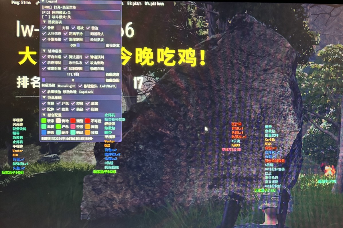 绝地求生:【LD】功能:透视-压枪-自瞄-掩体判断-显示KD-显示合作者-预警-大小地图雷达-自瞄自定义键位 附加功能:敌人等级显示-敌人武器子弹数量显示-敌人武器换弹显示-手持图片显示 价格:全功能30/天 100/周 价格:单透12/8小时 20/天 需要打开VT虚拟化 请先下载VT检测工具 下载密码:6666 |